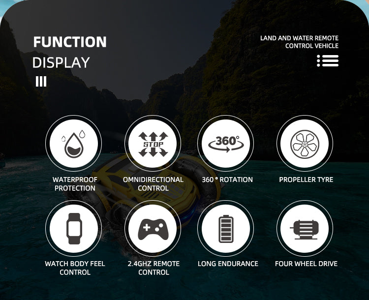 2.4Ghz Dual Control Waterproof RC All Terrian Toy Car. Poweful 4 Wheel Drive with Anti-skid wheel design. This stunt car... Read more