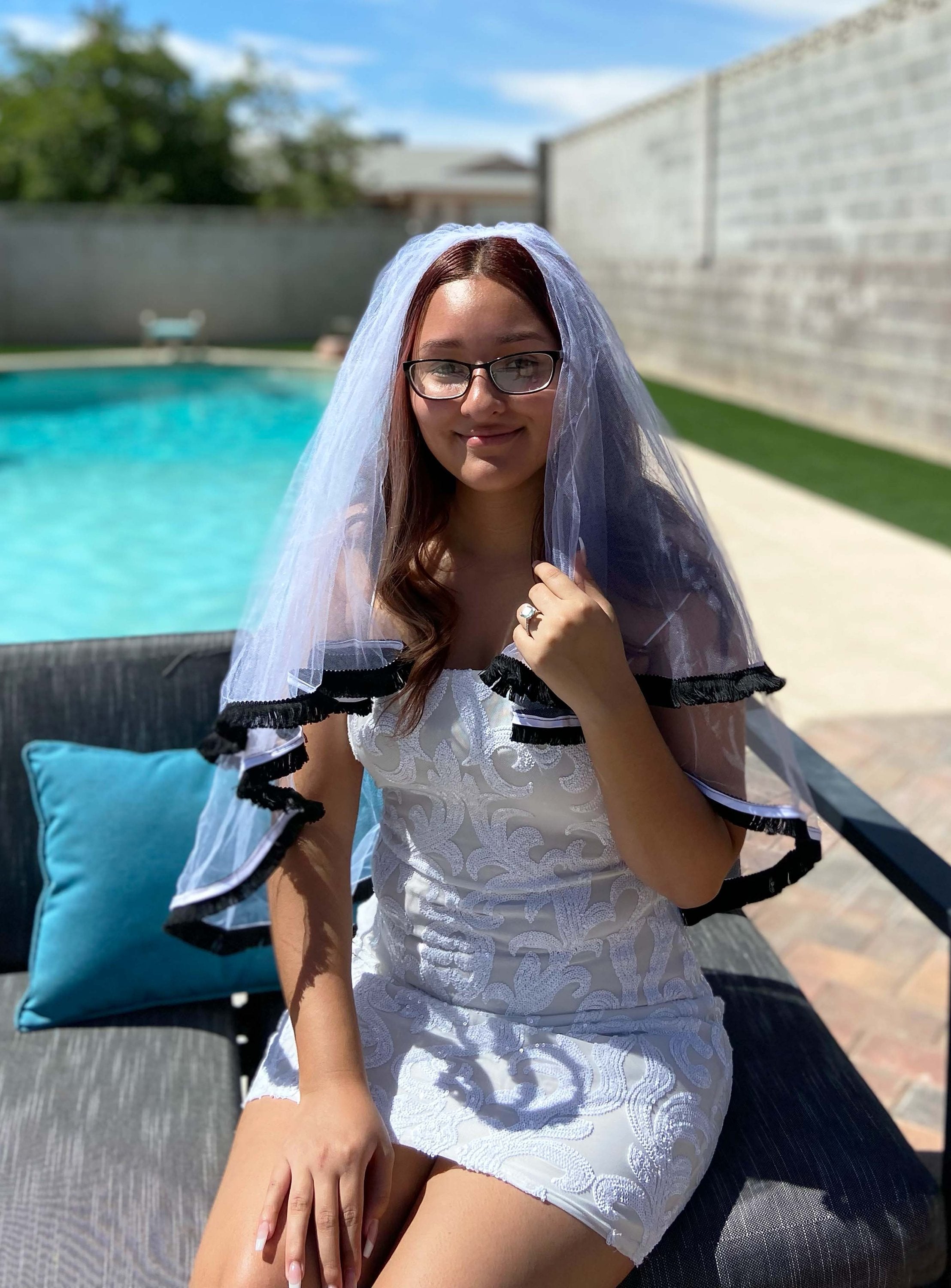 Black Fringe Trimmed Bachelorette Party Veil