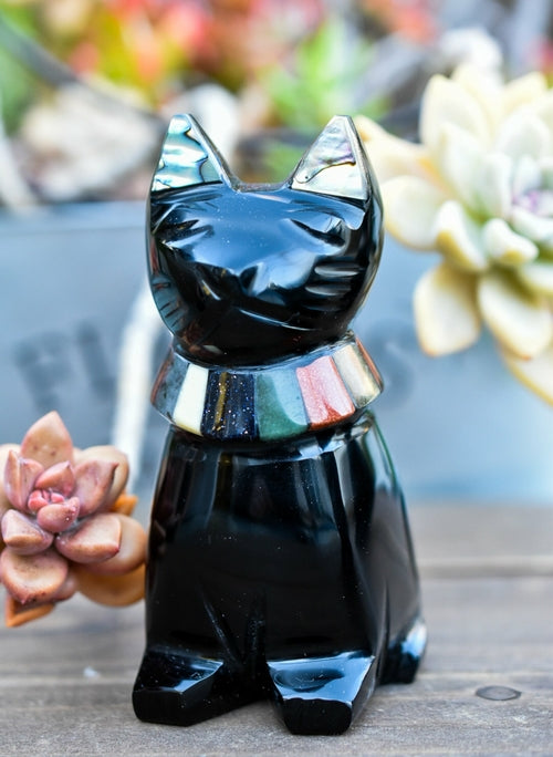 Large size black obsidian cats with natural stone collars! Each one is unique and handmade. Black Obsidian is actually volcanic... Read more