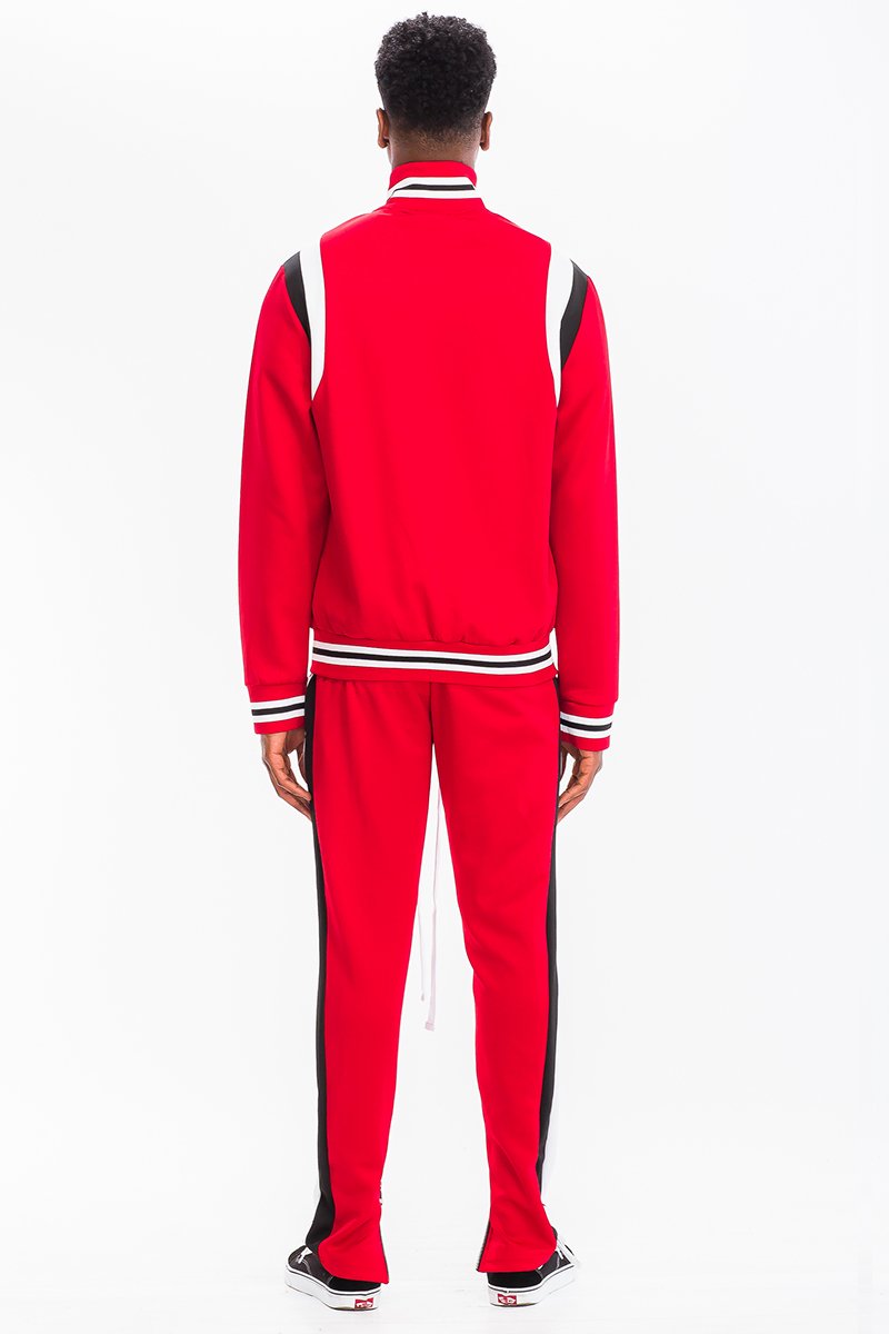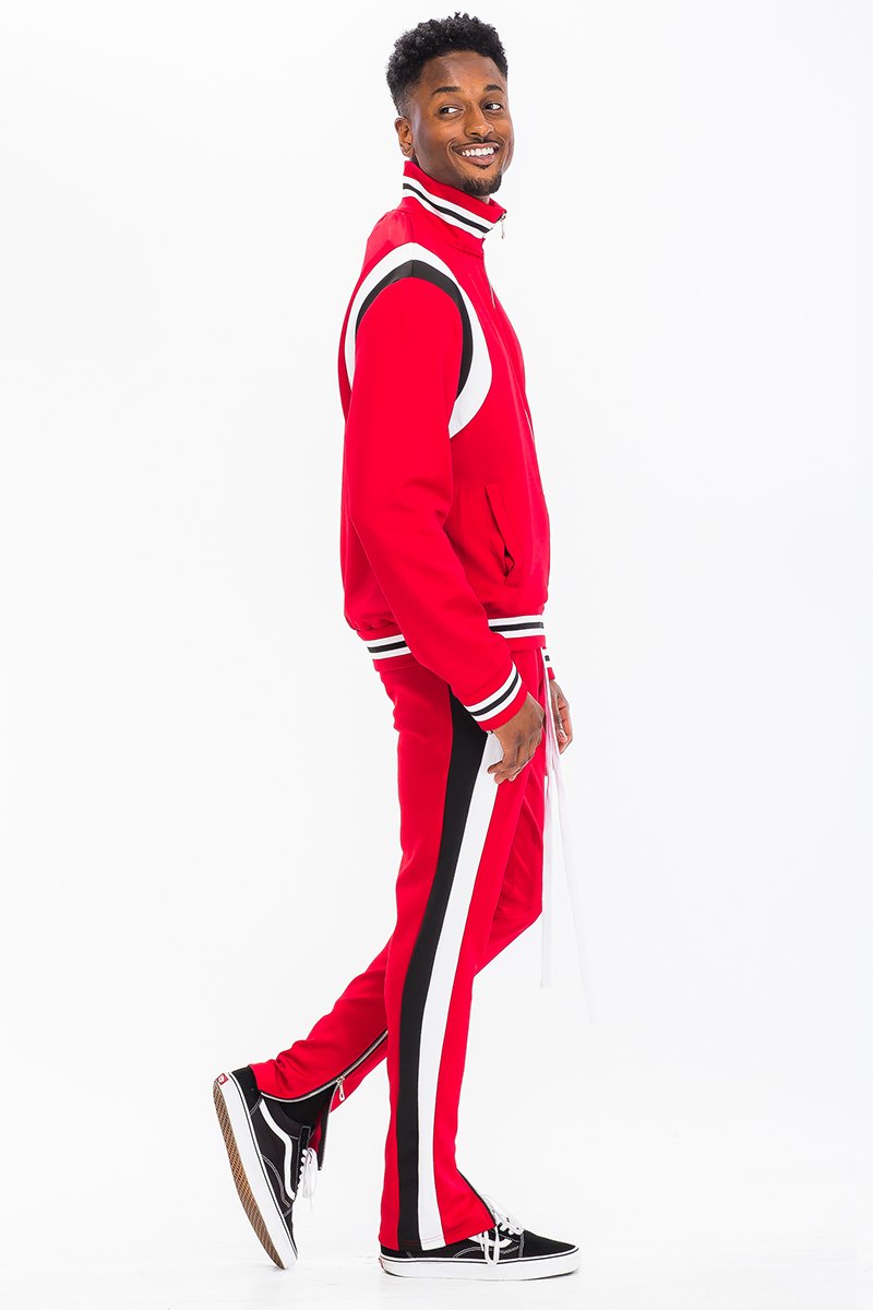 This full track jacket and pant track set is quality to the tee. Dual chevron stripe along the arm and... Read more