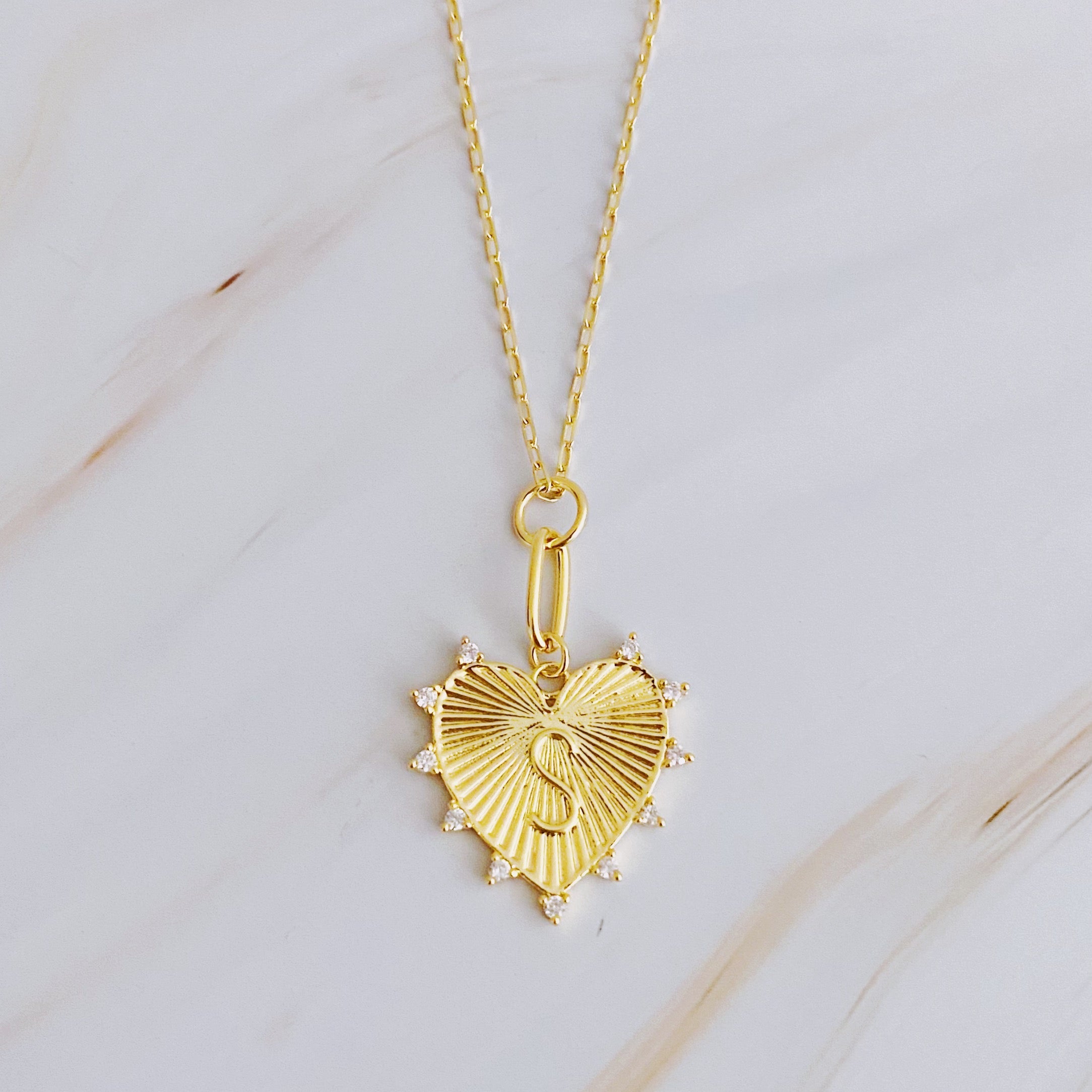Elevate your style with our Clip Hanging Initial Heart Necklace. The delicate link chain features a heart charm adorned with... Read more