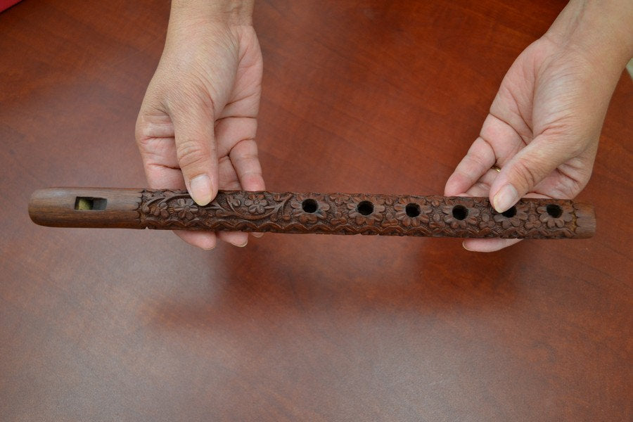 Handmade Carved Wood Whistle Flute 12"
