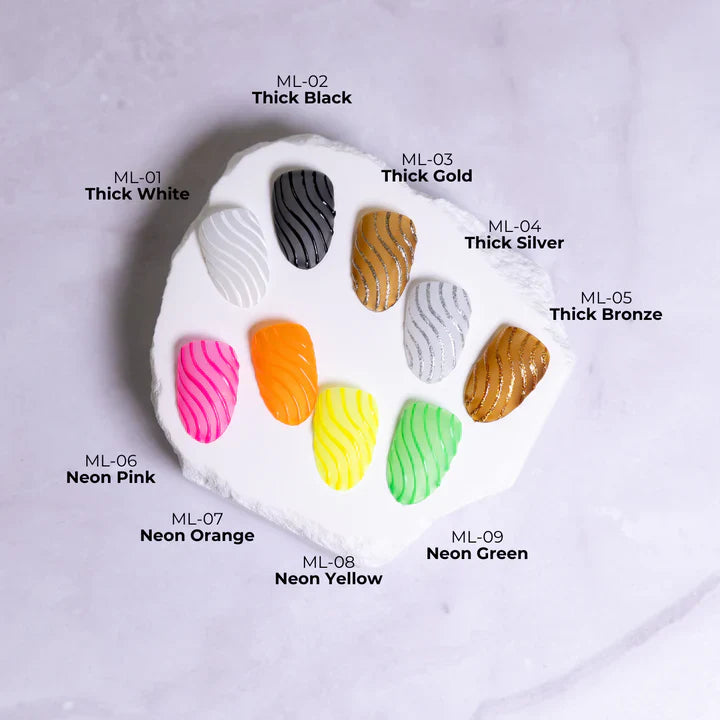 Apply ML-06 directly with your nail art brush to create fine lines or bold patterns.