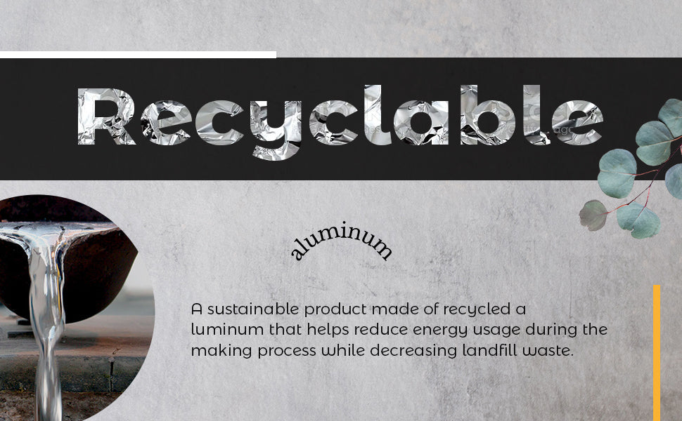 ECO-FRIENDLY. A sustainable product made of recycled aluminum that helps reduce energy usage during the making process while decreasing landfill waste.